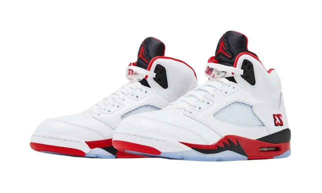 The Air Jordan 5 Fire Red “Black Tongue”, a legendary original colorway, is making a much-anticipated return in Fall 2025. This release celebrates the model’s 35th anniversary, bringing back a fan-favorite design that holds a special place in basketball and sneaker history. The Air Jordan 5 features a timeless combination of White, Black, and Fire Red. The upper is made from premium white leather, with signature mesh netting on the side panels and tongue. A bold black tongue adds contrast, creating a striking look against the white upper. Michael Jordan’s iconic number “23” is embroidered in red on the lateral heel, a subtle nod to his jersey. The heel showcases the Nike Air branding, giving the shoe a vintage touch true to its original roots. Fire Red accents appear on the midsole, lace lock, and sock liner, adding even more nostalgic flair. Finishing the design is a translucent outsole, staying true to the original style.
